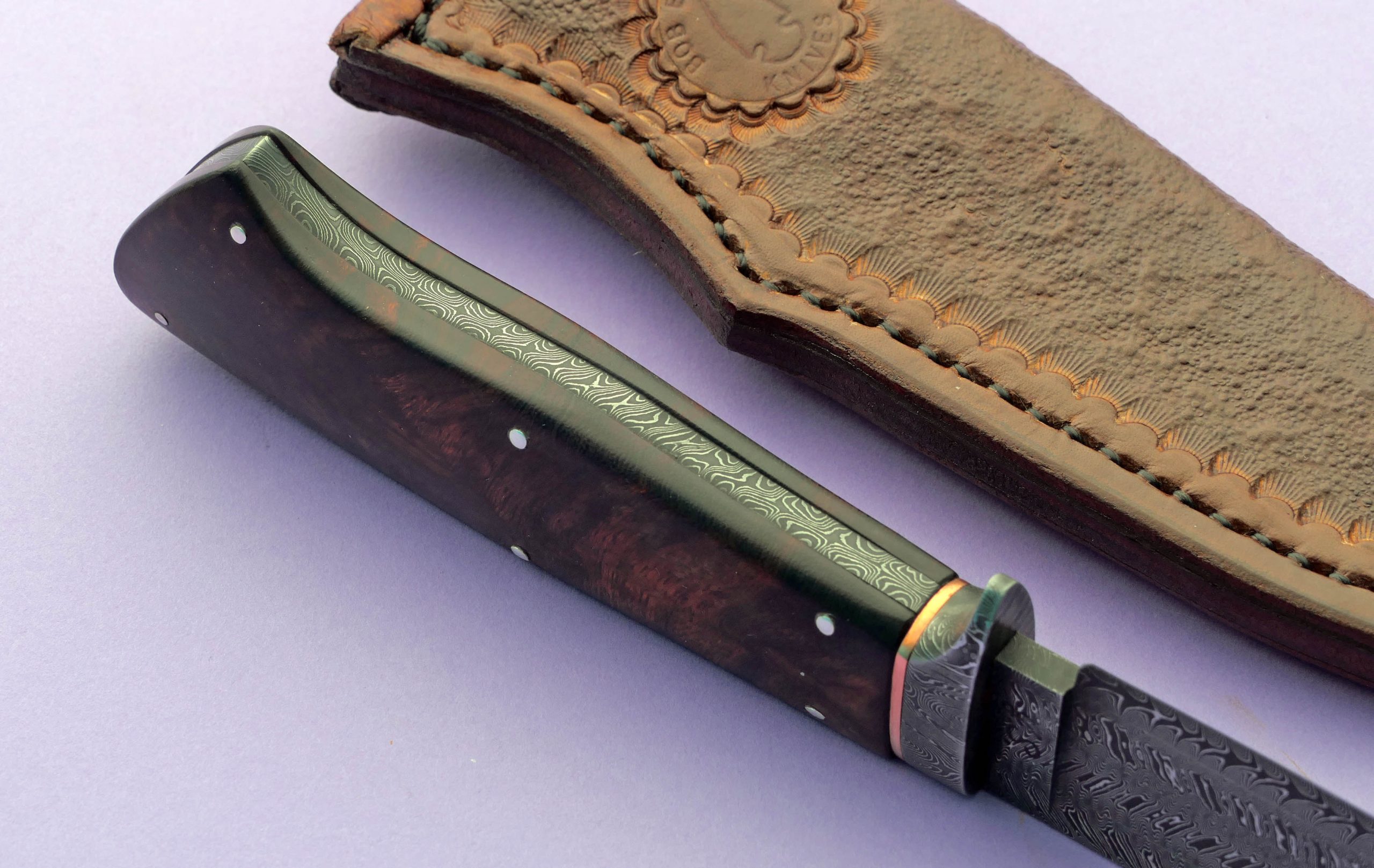Handle: Presentation Desert Ironwood with a Bronze spacer and domed stainless-steel pins.